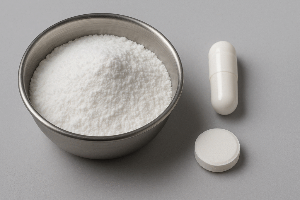 It is used in tablets, capsules, sachets, and chewable forms, making it a universal excipient across pharmaceutical and nutraceutical industries.